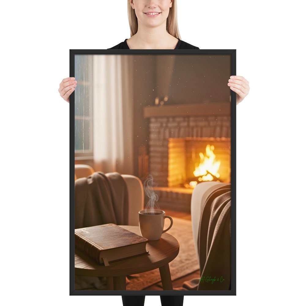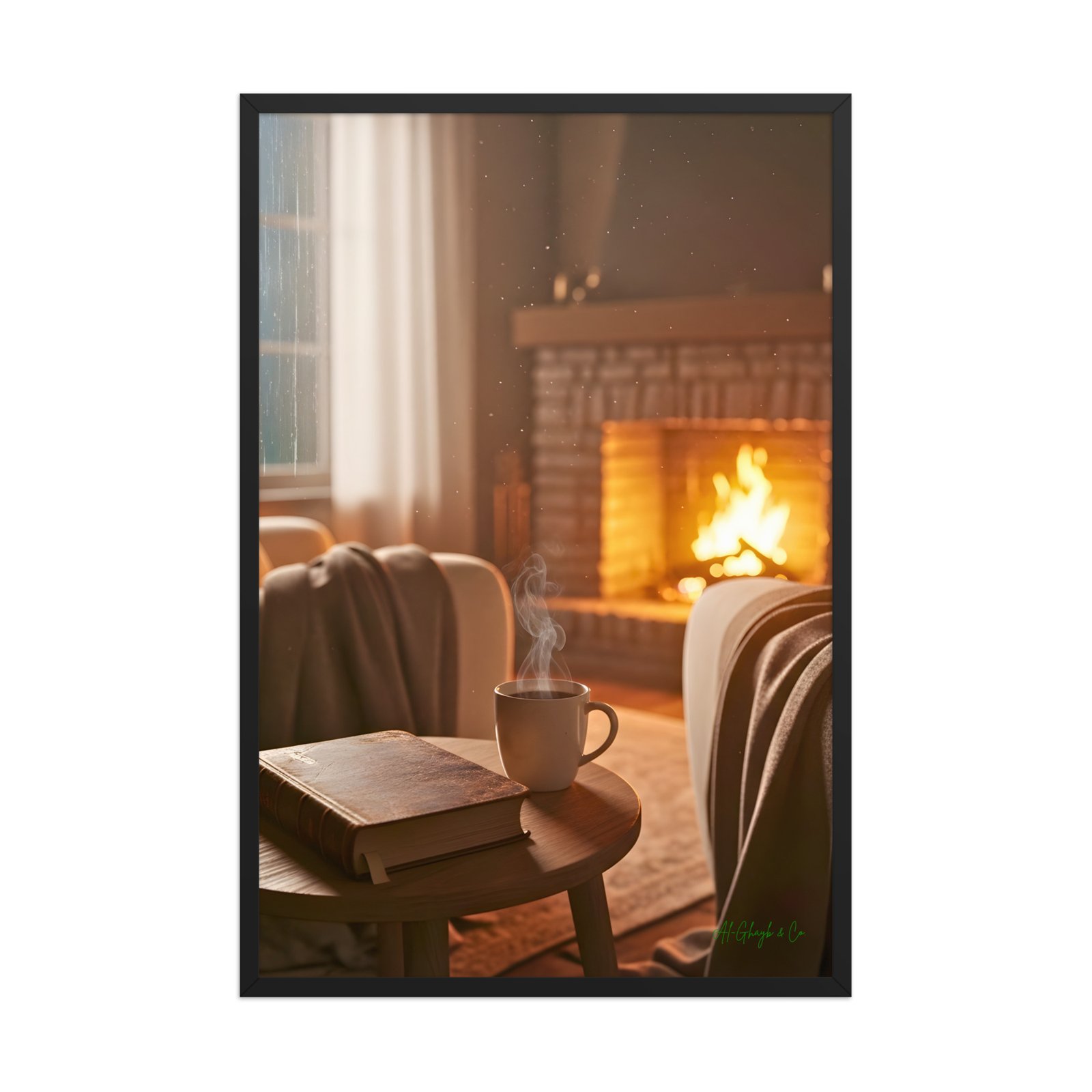 Fireside Serenity Framed Matte Art Print – 24″ × 36″