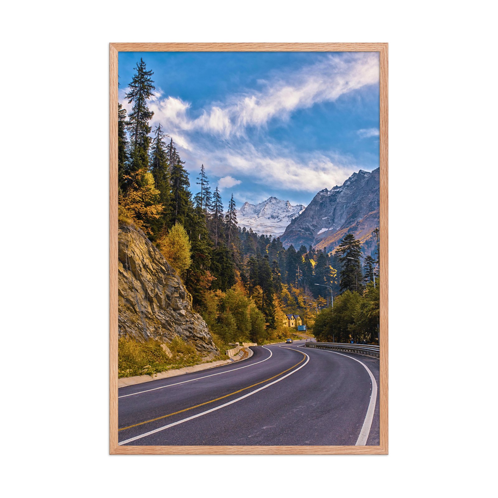 Majestic Mountain Road Framed Matte Art Print – 24″ × 36″