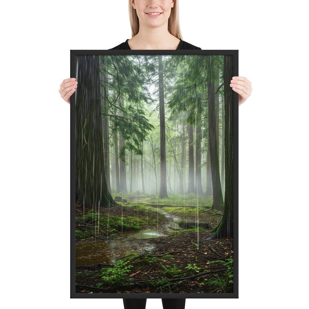 A serene, rain-kissed forest scene that brings depth, calm, and natural elegance into your space.