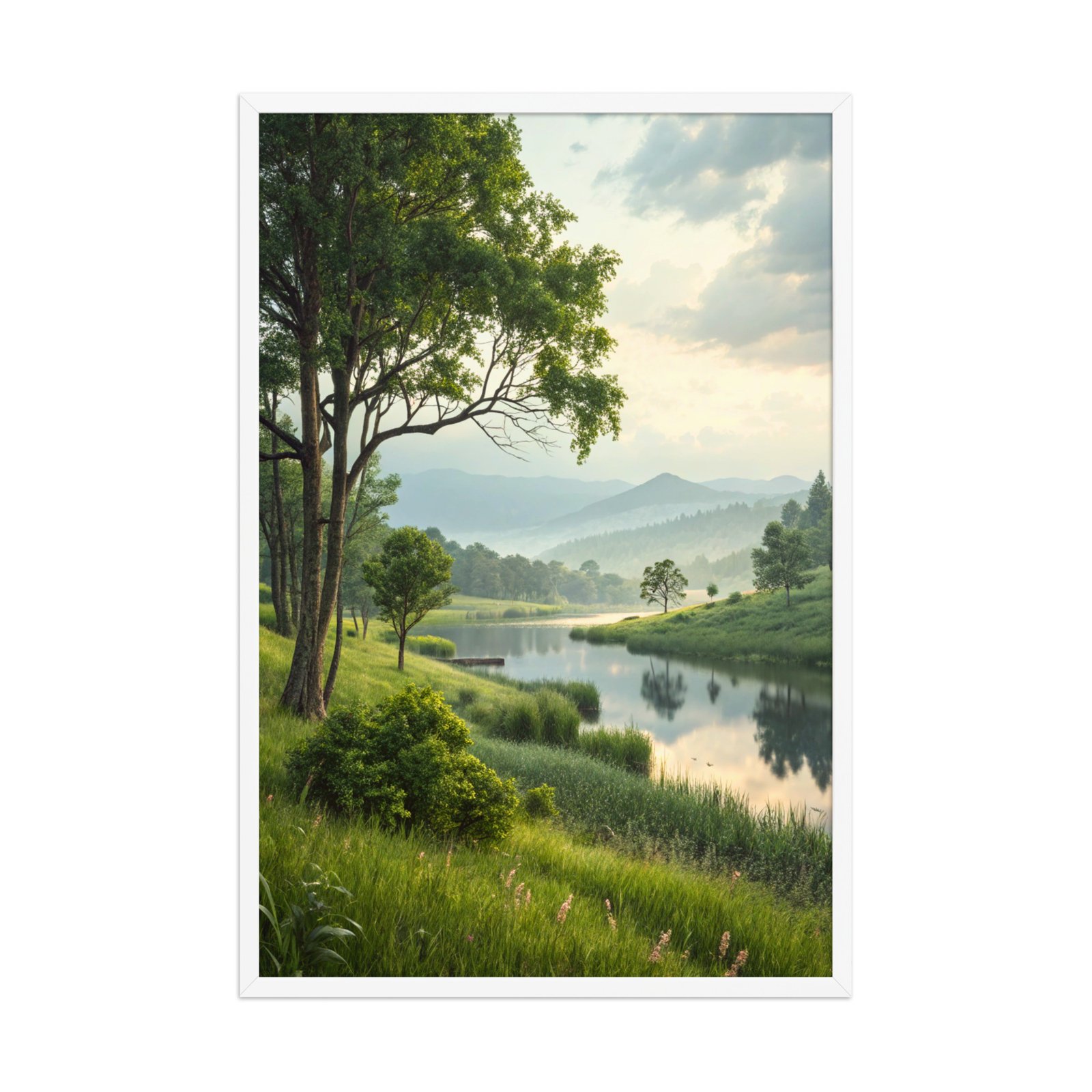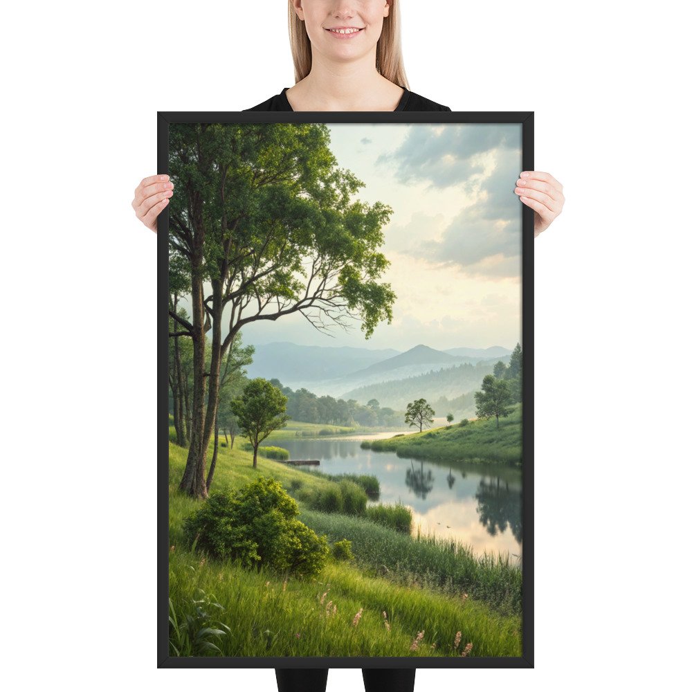 Misty Morning Serenity Framed Matte Art Print – 24″ × 36″