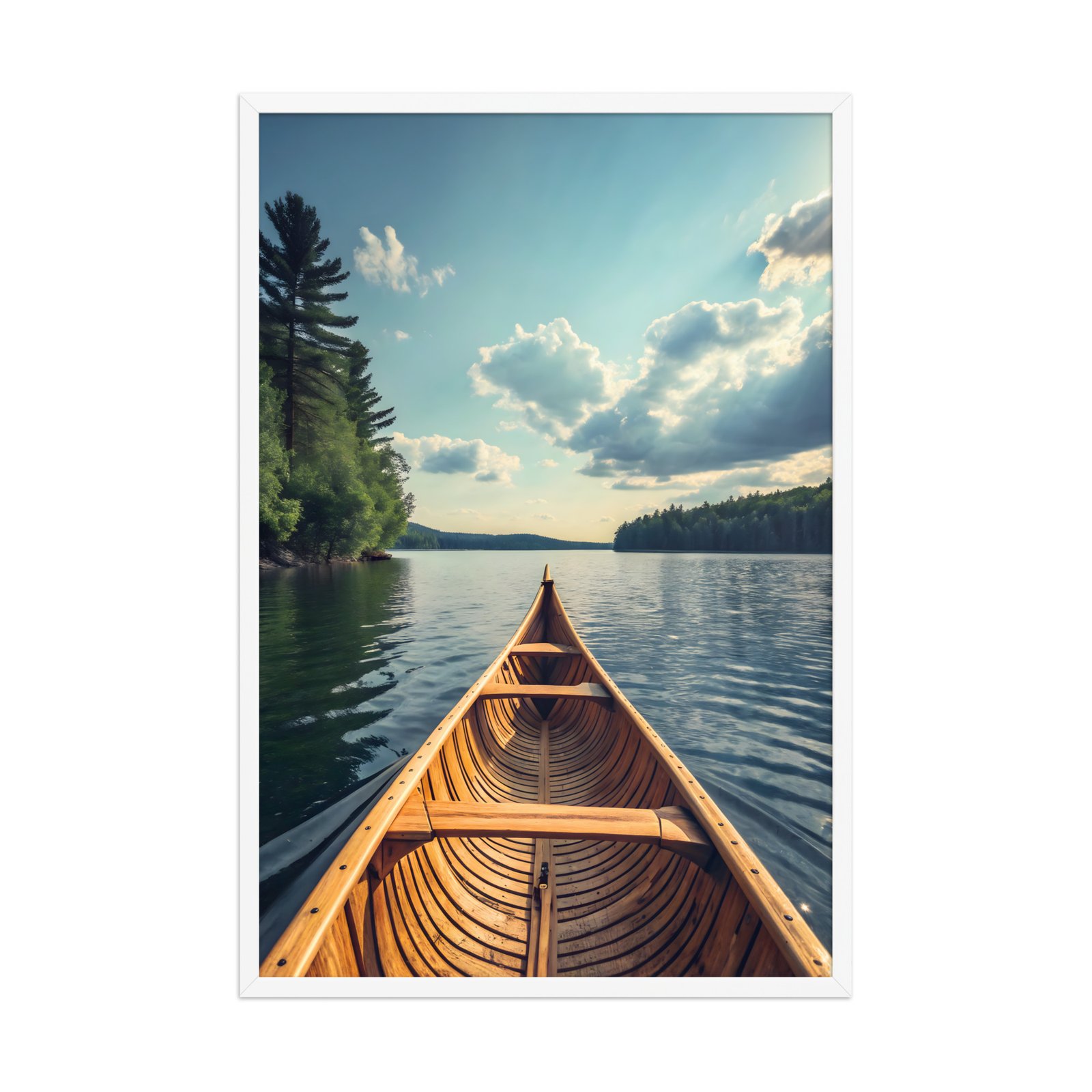 Embark on a journey of internal quietude. The Navigator’s Path offers a first-person perspective of a pristine lake crossing, where the artisanal craftsmanship of a cedar-strip canoe meets the raw majesty of the great outdoors. This 24″ x 36″ statement piece is rendered on museum-quality matte paper, capturing every grain of wood and ripple of light with breathtaking clarity. A sophisticated addition to coastal estates, lakeside retreats, or any space curated for peaceful reflection and high-end wanderlust.