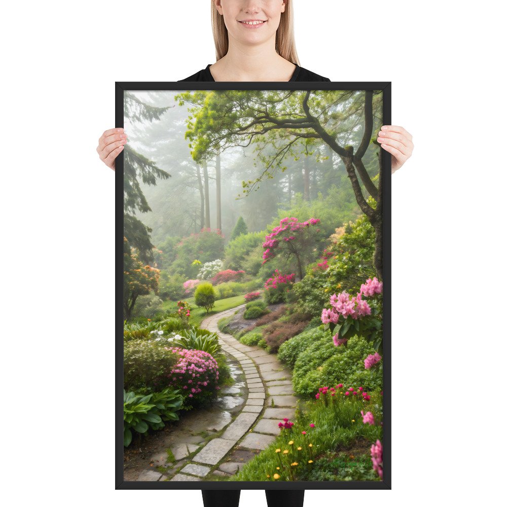 Whispering Garden Path Framed Matte Art Print – 24″ × 36″